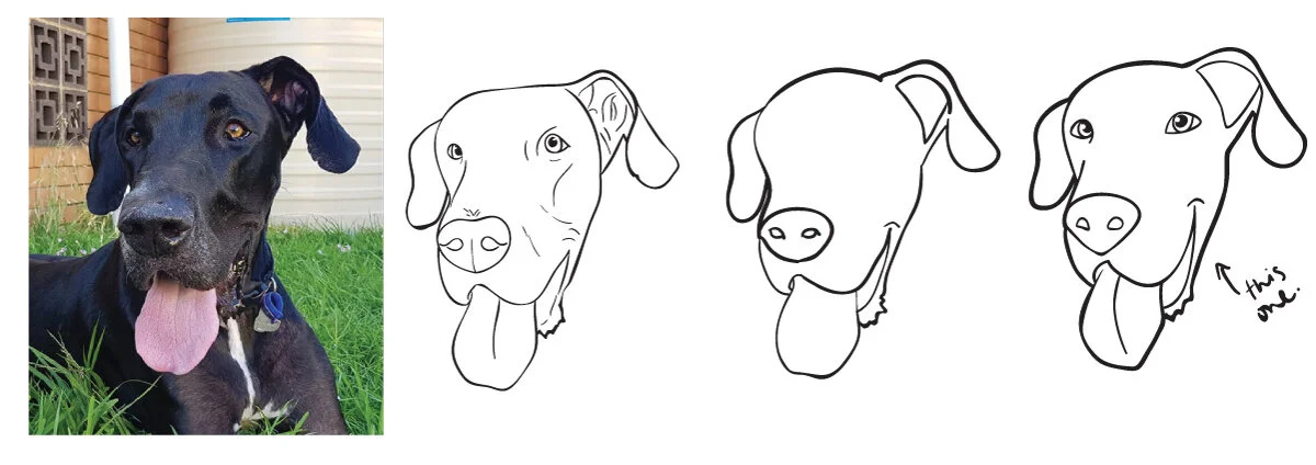 I explored different styles from cartoon to detailed to see how much detail is required to show Diego needs to be recognized.